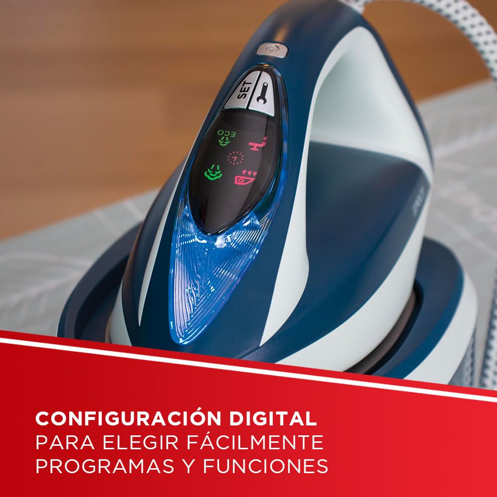 - DIGITAL SETTING: controles digitales en la empuñadura que le permiten planchar de forma inmediata y rápida teniendo siempre el control de la fase de planchado en la que se encuentra