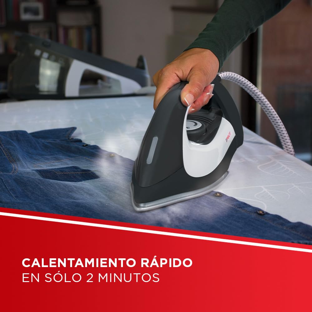- Depósito extraíble de 1,5 L para largas sesiones de planchado y calentamiento rápido de 2 minutos