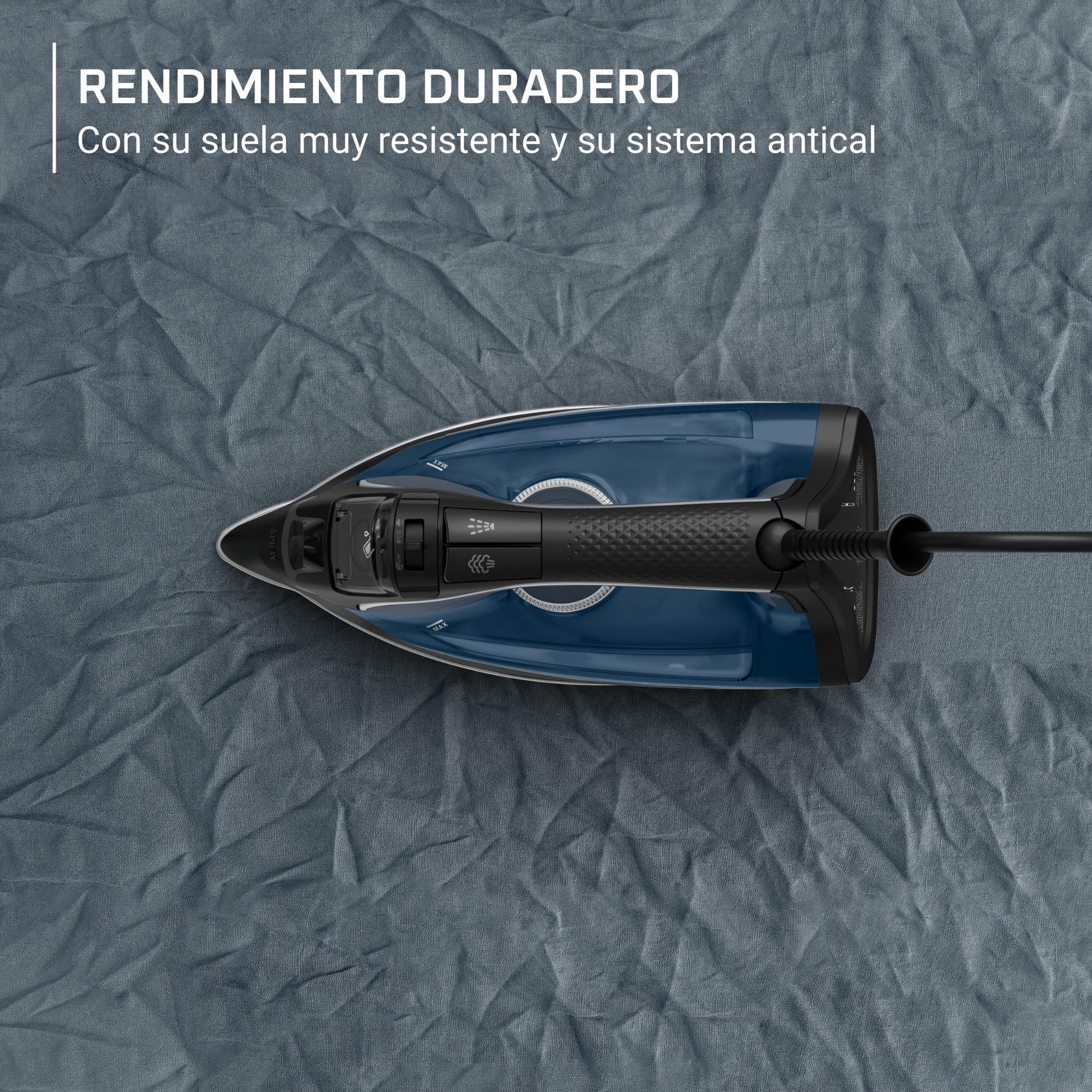 - RENDIMIENTO DURADERO: el acabado láser de la suela garantiza una gran resistencia a los arañazos, ofreciendo un rendimiento óptimo y duradero, mientras que su sistema antical integrado evita que la cal se acumule en la plancha